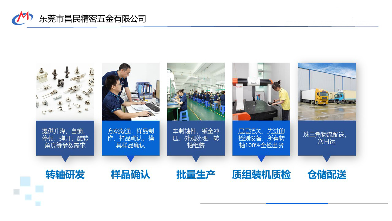 昌民精密注是東莞一家研發(fā)、生產(chǎn)各類筆記本電腦轉(zhuǎn)軸、DV轉(zhuǎn)軸、LCD轉(zhuǎn)軸、電話轉(zhuǎn)軸、手機(jī)平板轉(zhuǎn)軸、臺(tái)燈轉(zhuǎn)軸、學(xué)習(xí)機(jī)器轉(zhuǎn)軸、醫(yī)療設(shè)備轉(zhuǎn)軸、一體機(jī)轉(zhuǎn)軸、精密數(shù)控車削件、沖壓件等五金產(chǎn)品的轉(zhuǎn)軸生產(chǎn)廠家。昌民的轉(zhuǎn)軸產(chǎn)品已廣泛應(yīng)用于筆記本電腦、平板手機(jī)皮套、汽車、臺(tái)燈照明、無(wú)人機(jī)、收音機(jī)、耳機(jī)、醫(yī)療、戶外設(shè)備、軍工等各個(gè)領(lǐng)域。公司已通過ISO9001:2015質(zhì)量認(rèn)證體系,以合理化、標(biāo)準(zhǔn)化、系統(tǒng)化、自動(dòng)化為標(biāo)準(zhǔn)作業(yè),為客戶提供優(yōu)秀的產(chǎn)品和良好的服務(wù)。如果您有轉(zhuǎn)軸定制的需求,以上是昌民的定制流程。
